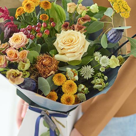 Perfectly formed, this trending autumn gift box will feature gorgeous blooms, foliage and dried flowers in muted colours like terracotta or silvery green.