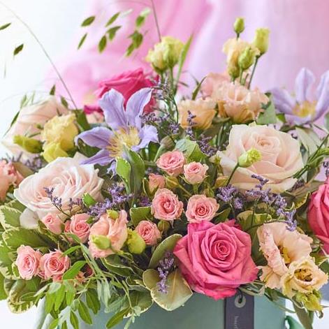 Pull out all the stops with the ultimate hatbox showstopper. No, we're not talking about a big fluffy hat, we're talking about gorgeous fresh flowers arranged just so in a stylish box.