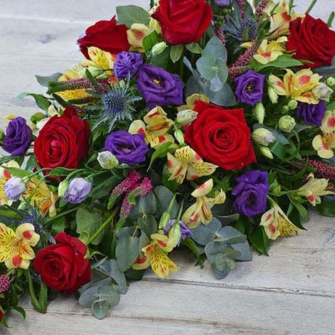 This teardrop shaped arrangement features blooms in a beautiful assortment of colours, including roses, lisianthus and alstroemeria.