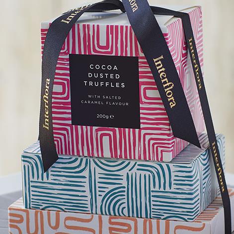 A trio of gourmet chocolate boxes.One filled with cocoa dusted salted caramel flavour truffles and two featuring rich filled chocolates each bursting with flavours including honey caramel, sumptuous praline, and cherry ganache. One for the true chocoholics.
